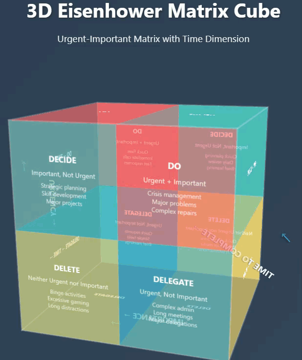 I’ve even hacked the Eisenhower Decision Matrix by adding a third dimension within each quadrant, in particular the first quadrant.  The additional dimension I like to use when deciding prioritization within quadrants is Difficulty/Ease or fast vs long projects. I’ll provide more on why that can be a helpful factor to consider later on.
